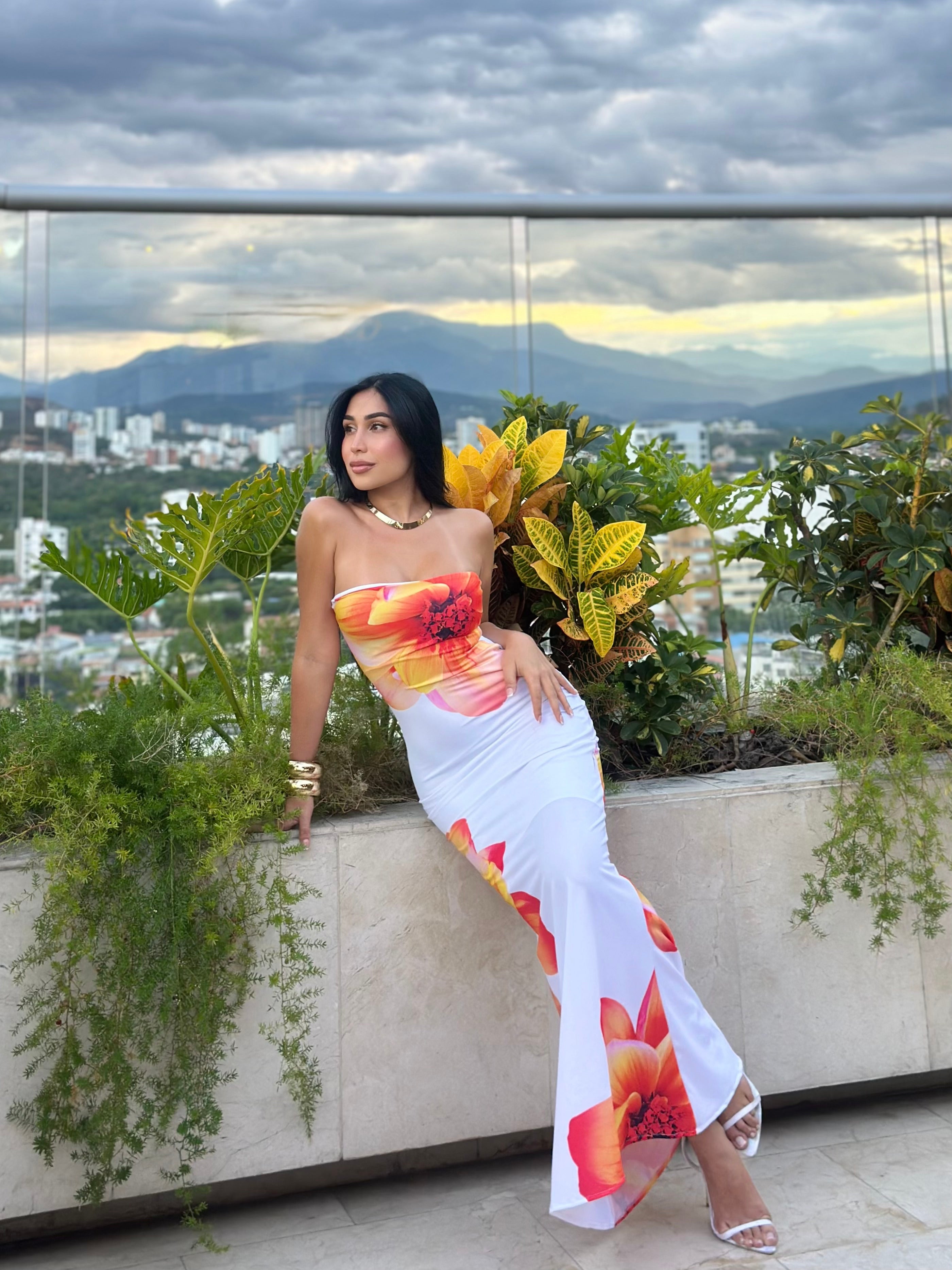 Su estampado floral, inspirado en los colores del amanecer, refleja la esencia de Renacer: volver a florecer con fuerza, belleza y confianza.